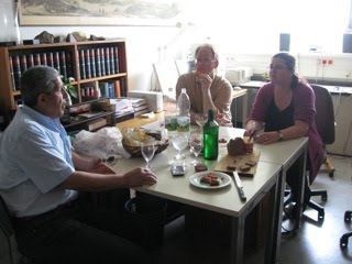 Bottom: BHL staff Martin Kalfatovic (back left) and Suzanne Pilsk (back right) having lunch in museum librarian Andrea Kourgli’s (front left) office.