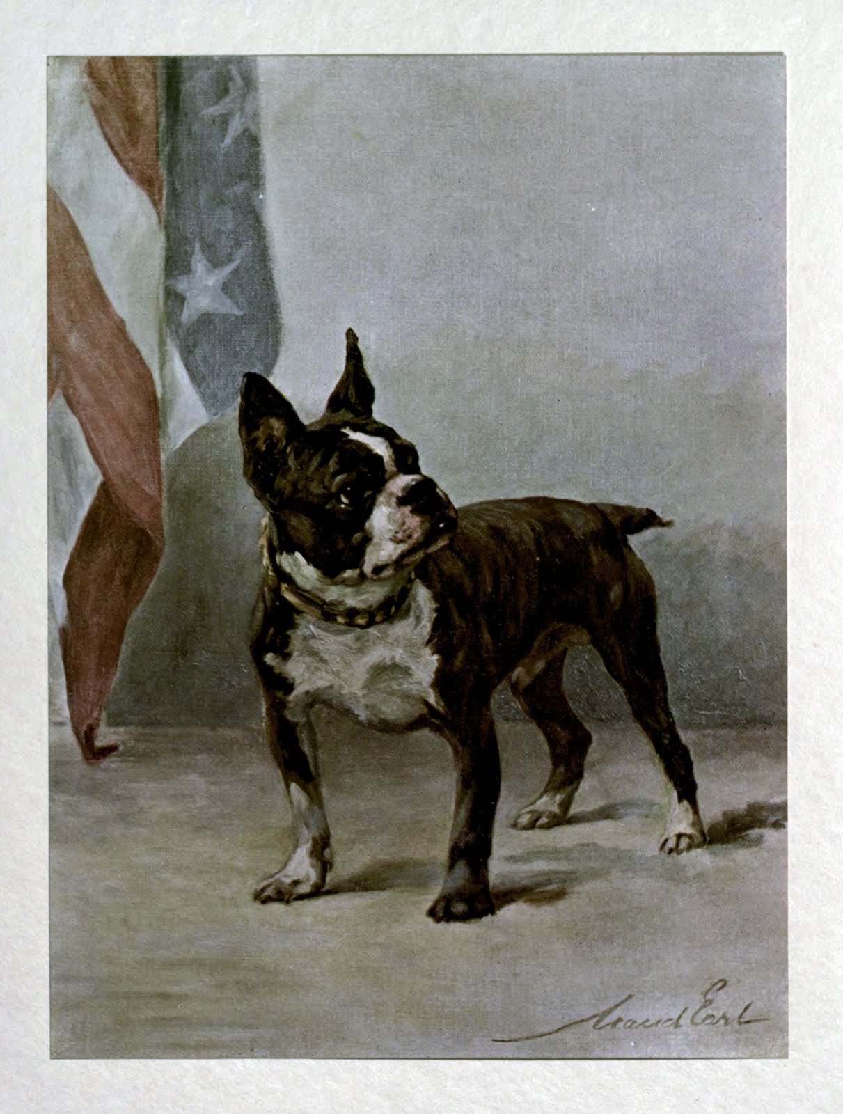 The book’s section on the Boston Terrier begins with the observation that America has produced few breeds of its own. The Boston Terrier, however, though being bred from “exotic” breeds imported from elsewhere, is one that America can claim. “Named after the ‘Hub of the Universe,'” this breed is an “active, game, ‘trappy’ little fellow, fit for my lady’s carriage or as a friend of the working man.” Though the breed had become a favorite pet of the Americans by the writing of this book, the author remarked that the original intentions for the breed were much more sinister. “My impression is that the desire was to manufacture a gladiator fit for the pit; and a cross between a bulldog and a terrier would be about as useful as anything for this horrible purpose. Fate, however, had in store for him a kindlier destiny than mauling his fellows and being mauled in return.”