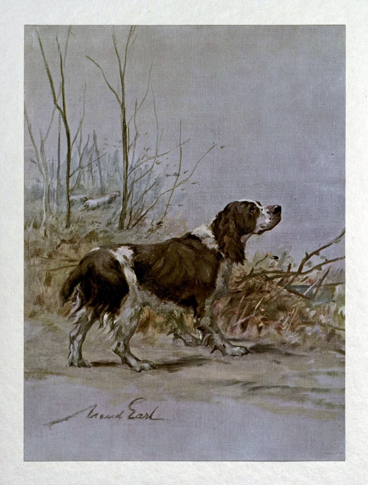 According to our book of the week, the English Springer “is designed primarily, by serving the sportsman in the field, to accomplish useful duties, but at the same time his docility of disposition, sagacity of expression and beauty of coat make him also a welcome companion when the day’s labours are ended.” At the time of the writing of the book, the English Springer was one of the least popular spaniel breeds, though the author argues that the breed is nearly unparalleled in its utility as a hunting companion. The name “is of good old English derivation, denoting the object for which the dog was employed – to spring birds to the net or gun.”