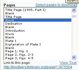 Pagination is the process of dividing our content into discrete pages in order to more easily find the information researchers need to help them do their work in a timely manner without having to search for information page by page. Basically, pagination includes indicating things such as page numbers, volume and issue numbers, tables of content, indices, identifying plates and figures and anything else to make searching through online items easy and quick. My position requires me to do quite a bit of pagination as it is an important component to using BHL for research. In the end, I want to make something that looks like this…
