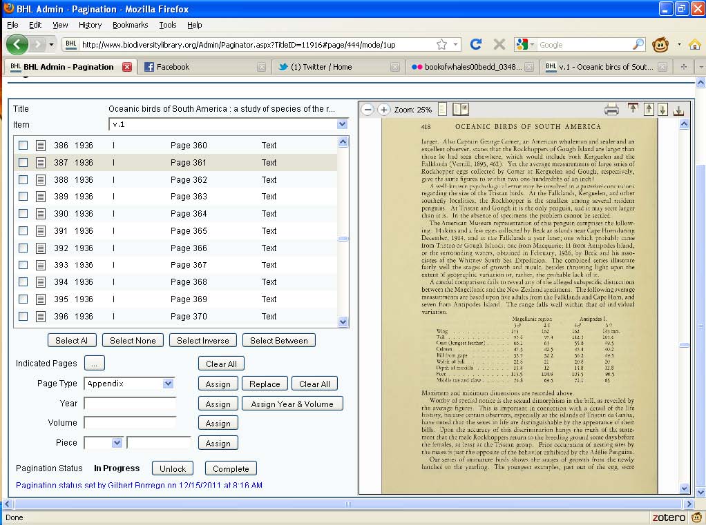 To kick off the new year, we here at BHL are starting a new monthly series titled “My Life as a BHL Staffer.” Each month, we will showcase a different BHL staff member and give an overview of what tasks and duties that person performs. We kick off the series with me, Gilbert Borrego, BHL staff member from the Smithsonian Institution. While I have a lot of different duties to perform for BHL, I can group them into three main areas: Social Media (which includes Flickr and Facebook), the pagination of BHL materials, and lastly, the pulling and returning of the physical items that will be scanned and eventually show up on BHL. I’ll start with the fan favorite: