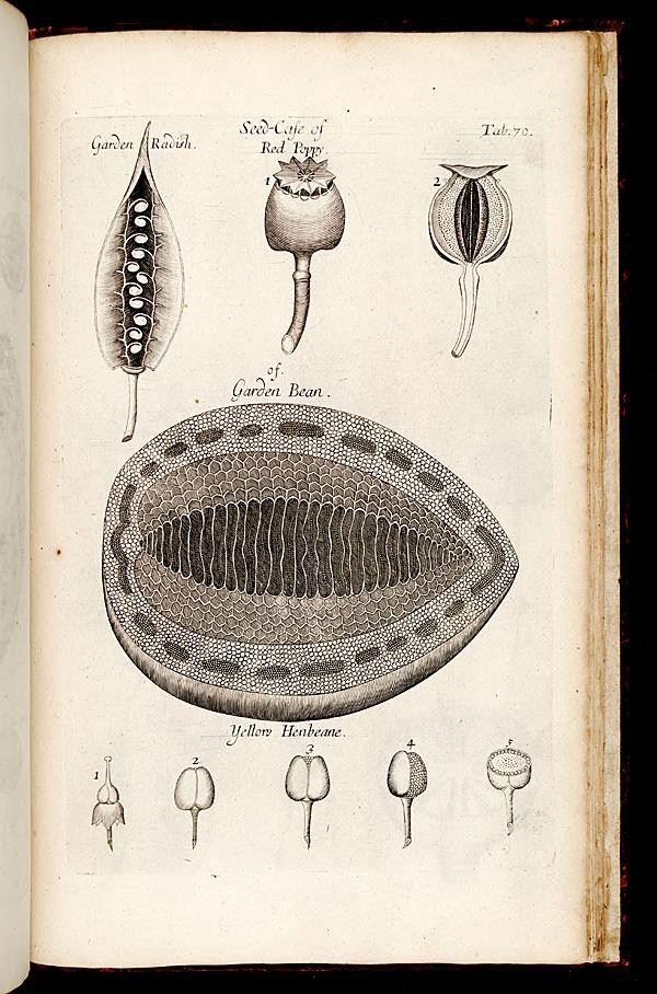 Despite the critical importance of the discoveries presented in this work, what is more likely to draw your attention to Grew’s Anatomy are the 82 exquisite engravings contained within. The illustrations depict in unprecedented detail the internal subtleties of roots, stems, tree trunks, and, not least of all, seeds. We’ve presented a few of our favorites in this post, but be sure to check out the entire collection on our Flickr account.