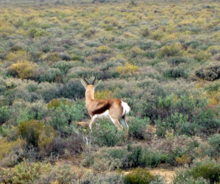 The springbok is a skittish creature, literally “springing” away from anything it deems remotely threatening, including, apparently, safari groups. Hence, we only captured shots of these graceful animals sprinting away from us. Alex informed us that this species has an incredible jumping capability; when threatened, they will lock their legs and channel their momentum earthbound, creating incredible thrust that allows them to leap over enemies.