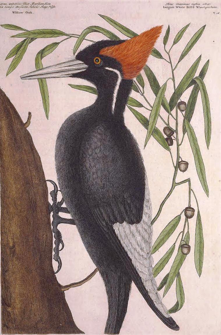 In Catesby’s work are some species that none of us will ever have the opportunity to observe in life—the now extinct Carolina Parakeet, Passenger Pigeon, and Ivory-billed Woodpecker: