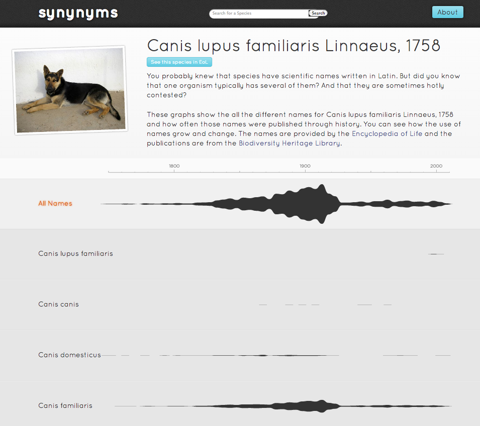 With such a rich history of domestication and intimacy with our species, one would think we’d have Canis lupus familiaris figured out, but it was not until recently that dogs’ taxonomy was resolved according to the Integrated Taxonomic Information System’s report. Linnaeus first described the domestic dog as Canis canis in Systema Naturae 1735 and later revised his own classification. As our good friend over at Synynyms.com illustrates, the taxonomic story of the dog has gone through many iterations including C. domesticus and C. familiaris, finally settling as a subspecies of C. lupus.