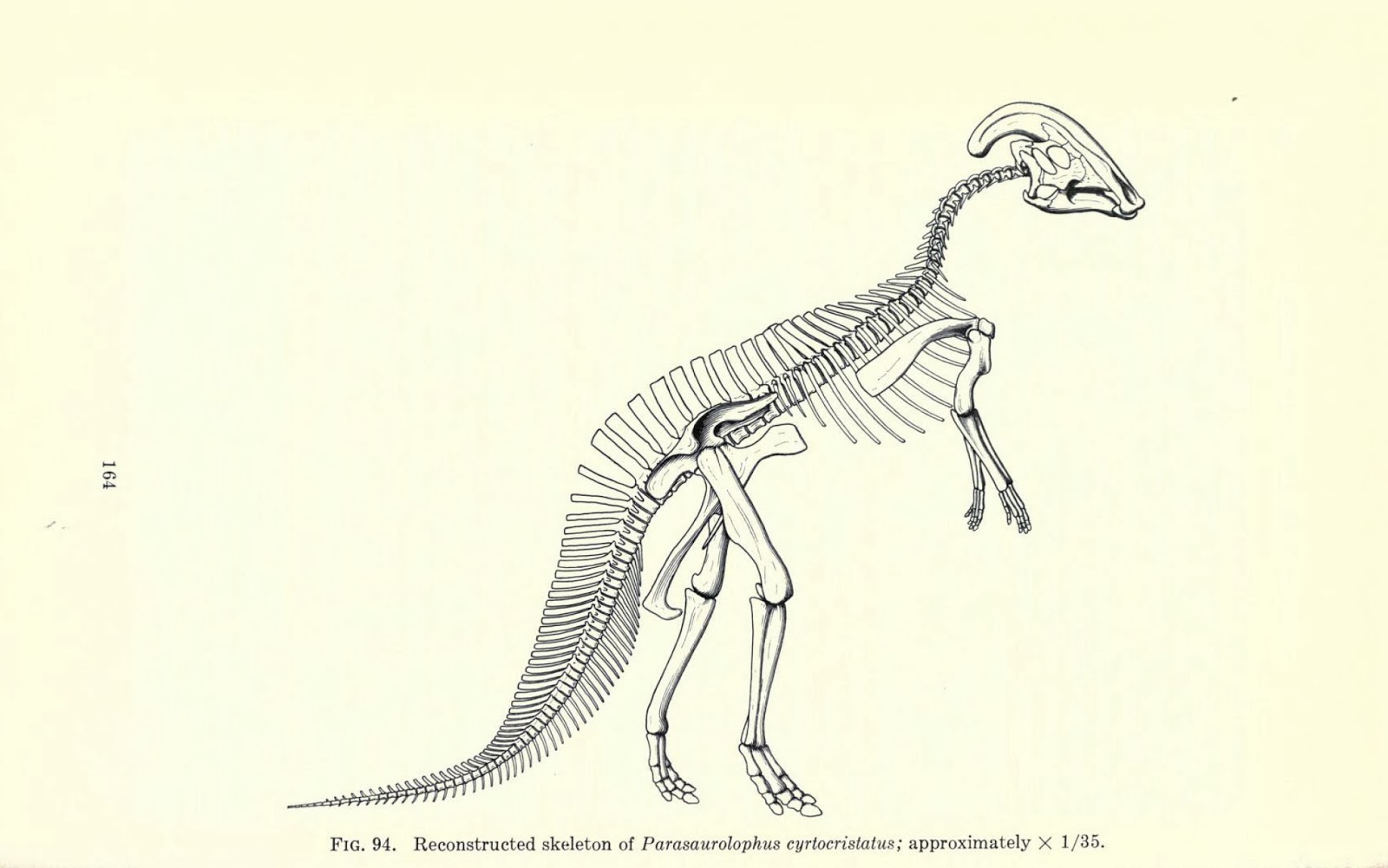 | A page from Fieldiana: Geology series showing a reconstruction of Parasuarolophus cyrocristatus. http://biodiversitylibrary.org/page/4264754 |