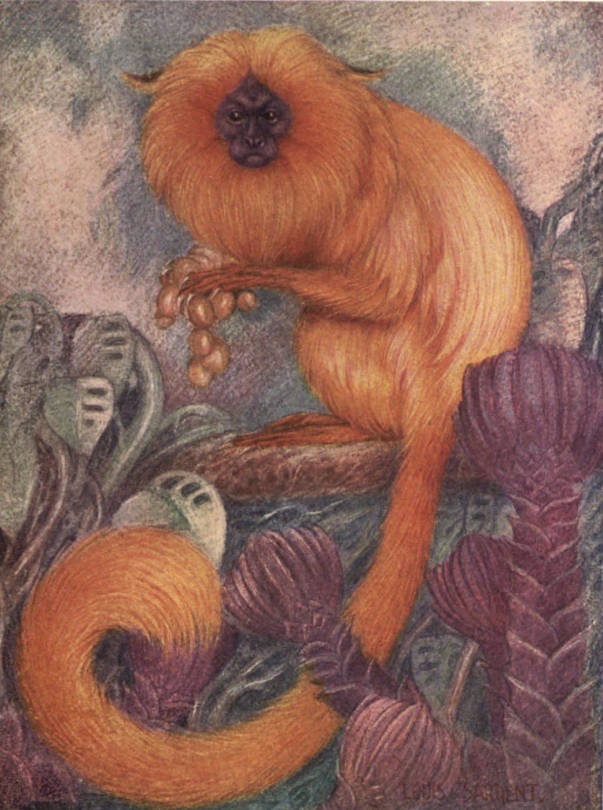 | The Golden Lion Tamarin. Illustrated by Louis Sargent. From: Finn, Frank. The Wild Beasts of the World. (v. 1, 1909). http://biodiversitylibrary.org/page/19058592 |