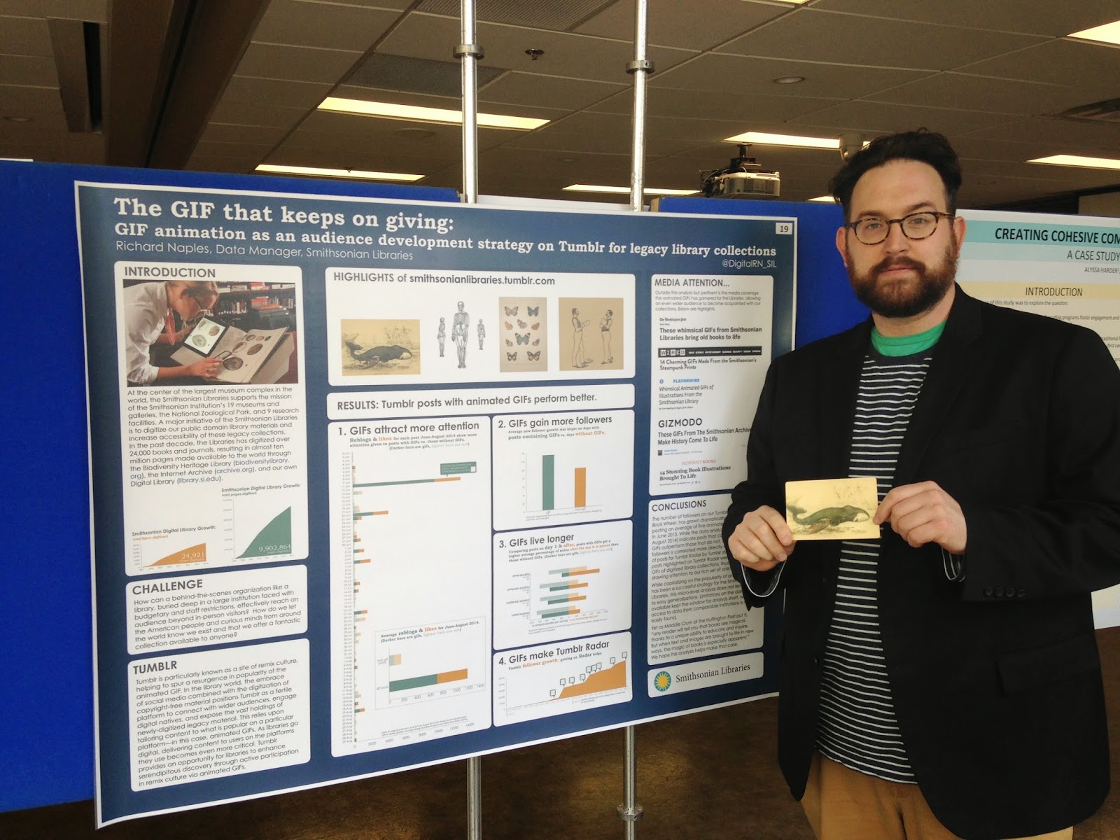 BHL partner Smithsonian Libraries also presented a poster at the conference entitled “The GIF That Keeps on Giving,” by Richard Naples. The poster presents the library’s use of animated GIFs in Tumblr, and the increased exposure and reach that this “culture remix” enables. Many of the GIFs are from books digitized for BHL.