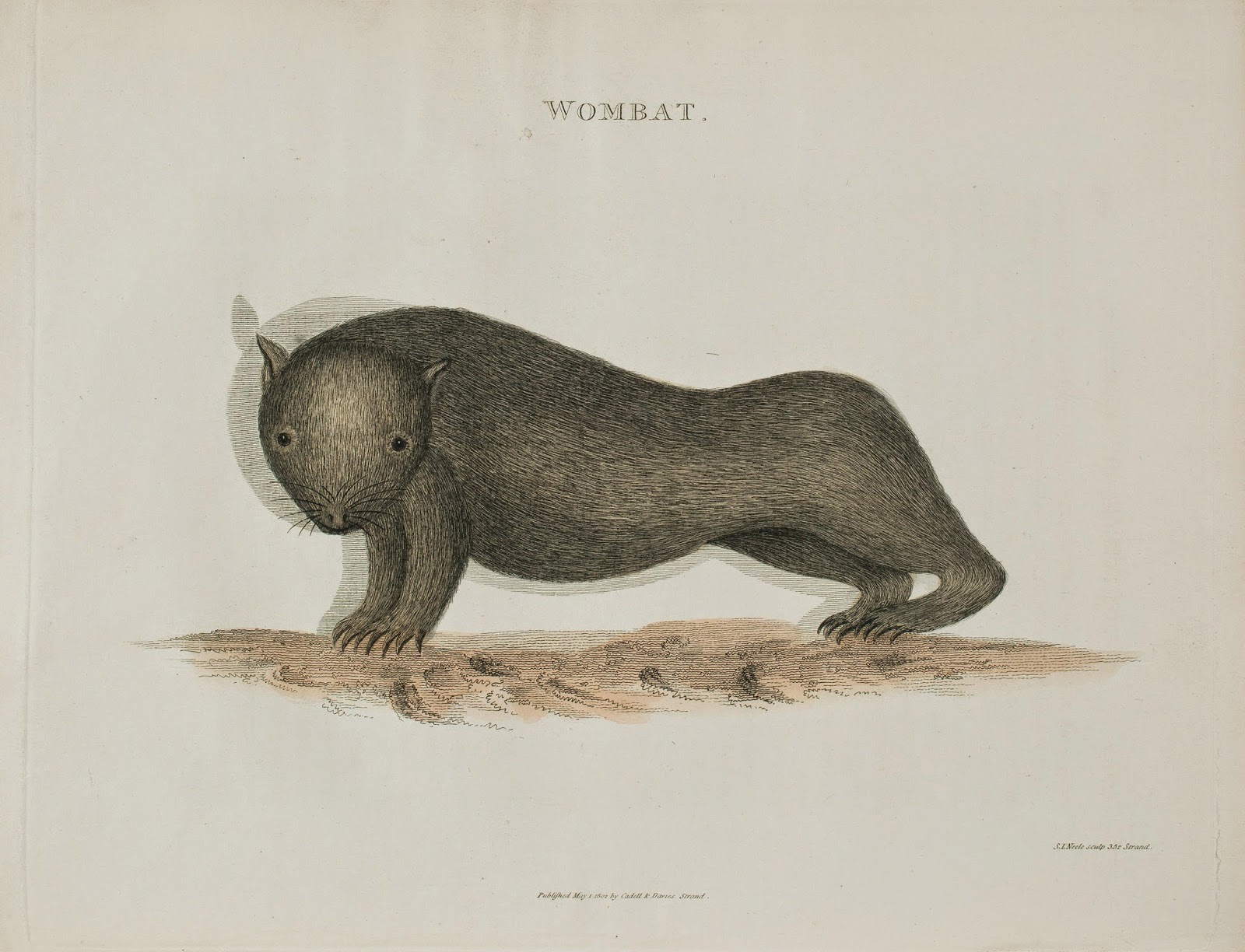 | Wombat, from An account of the English colony in New South Wales, from its first settlement in January 1788 to August 1801, David Collins, 1804. The entire book can now be viewed online. Source: Biodiversity Heritage Library |