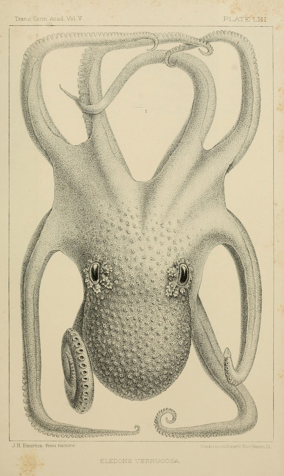 | Graneledone verrucosa. Verrill, A.E. Cephalopods of the North-eastern Coast of America. v. 2. 1881. http://biodiversitylibrary.org/page/11826821. |