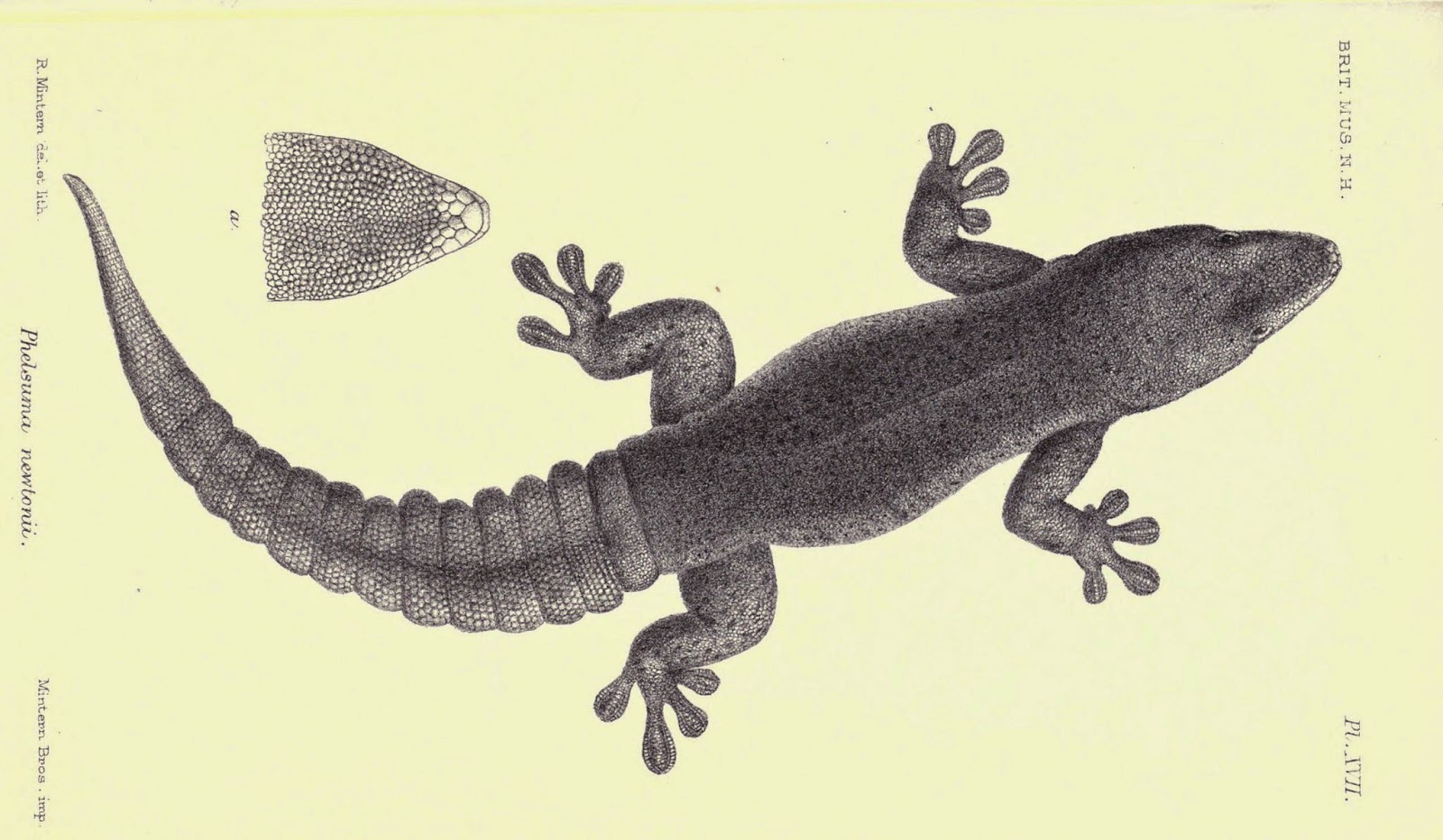 | Rodrigues Day Gecko, Extinct. Catalogue of the lizards in the British Museum (Natural History) 2d. ed., v. 1 (1885). http://biodiversitylibrary.org/page/18438199. |