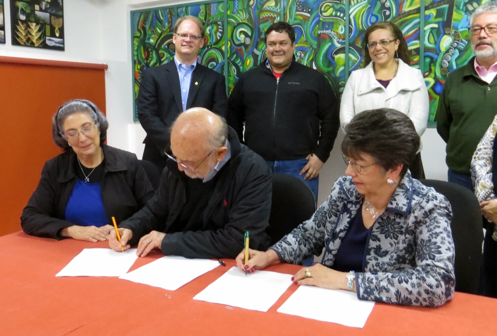 | Dr. Patricia Koleff, Dr. Nancy E. Gwinn, Carolyn Sheffield, and Karina Sánchez finalizing the BHL/CONABIO MOU |