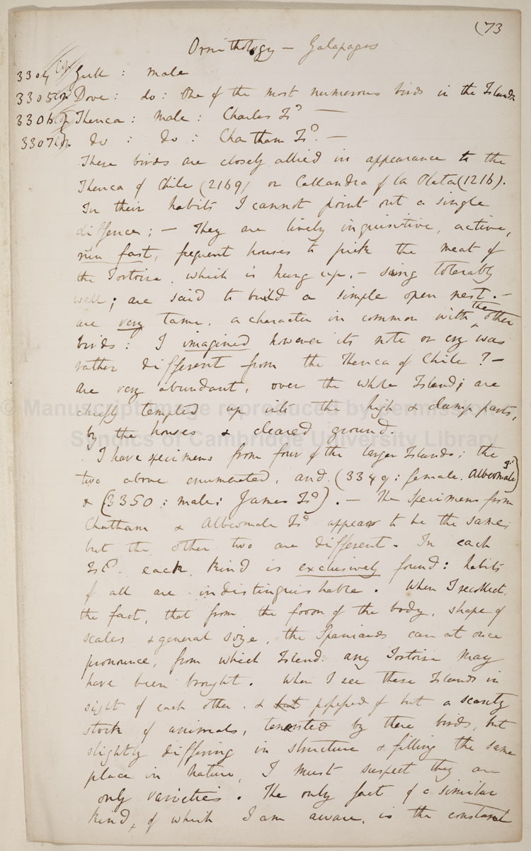 | Ornithology Notes. Pg. 73. Cambridge University Library. |