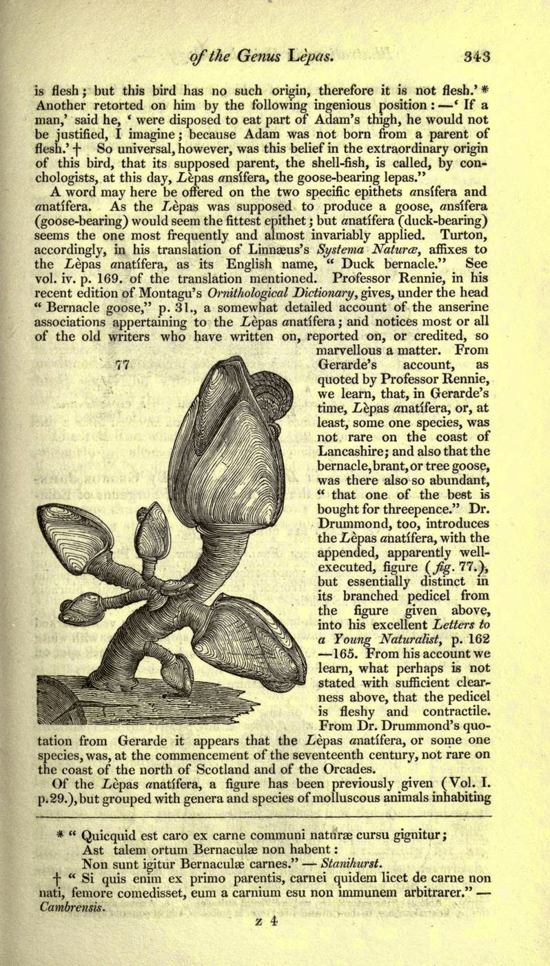 | Barnacles transforming into Geese. Magazine of Natural History. v. 5 (1832).http://biodiversitylibrary.org/page/2301212. |