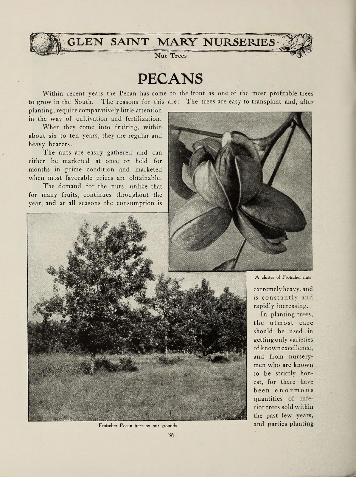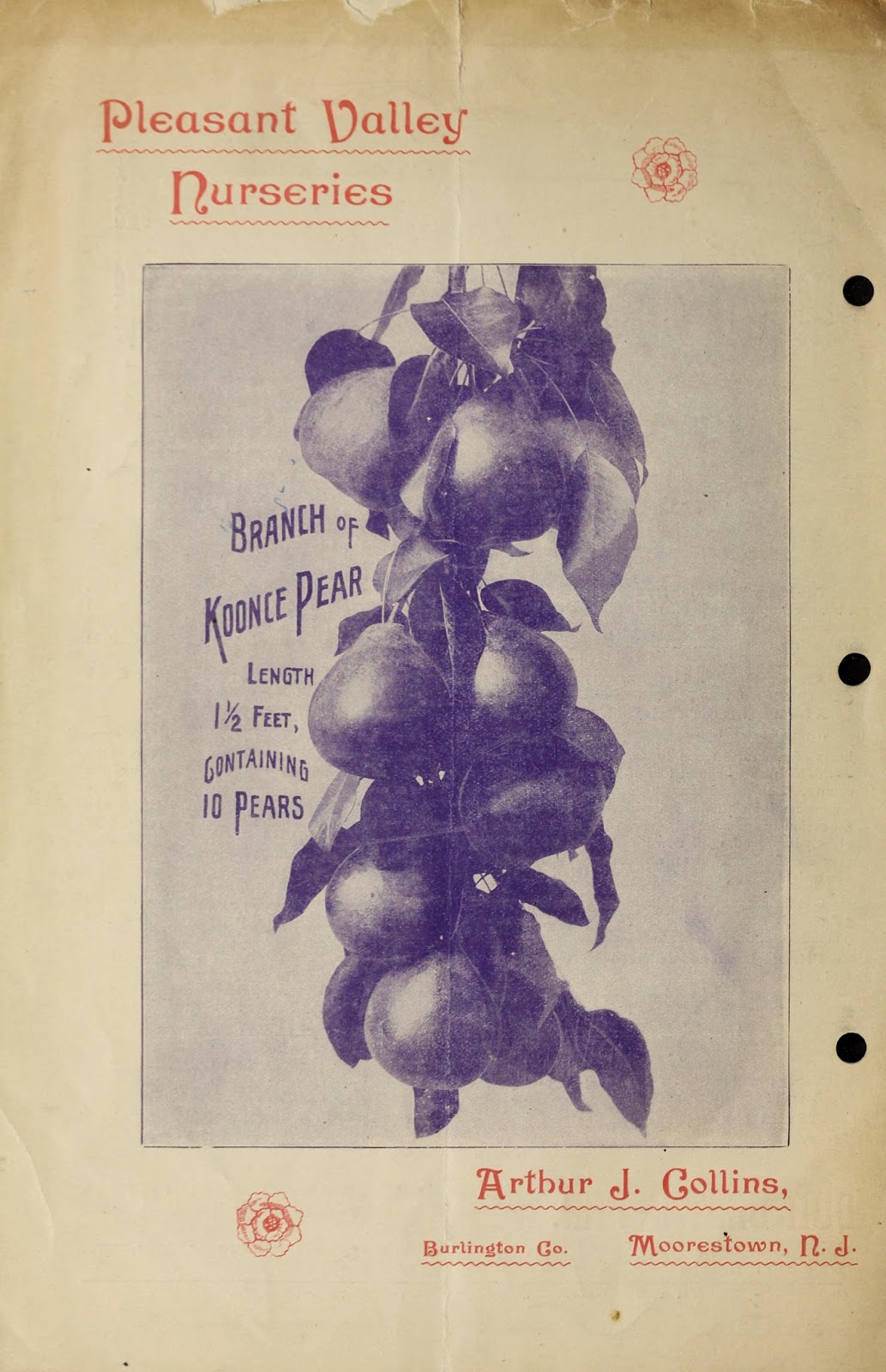 | A 1906 catalog printed by “Mount Pleasant Press, J. Horace McFarland Company, Harrisburg, Pennsylvania” titled Glen Saint Mary Nurseries. Note that by this time period, most of the plant illustrations are black and white photographs. http://biodiversitylibrary.org/page/46778542. |