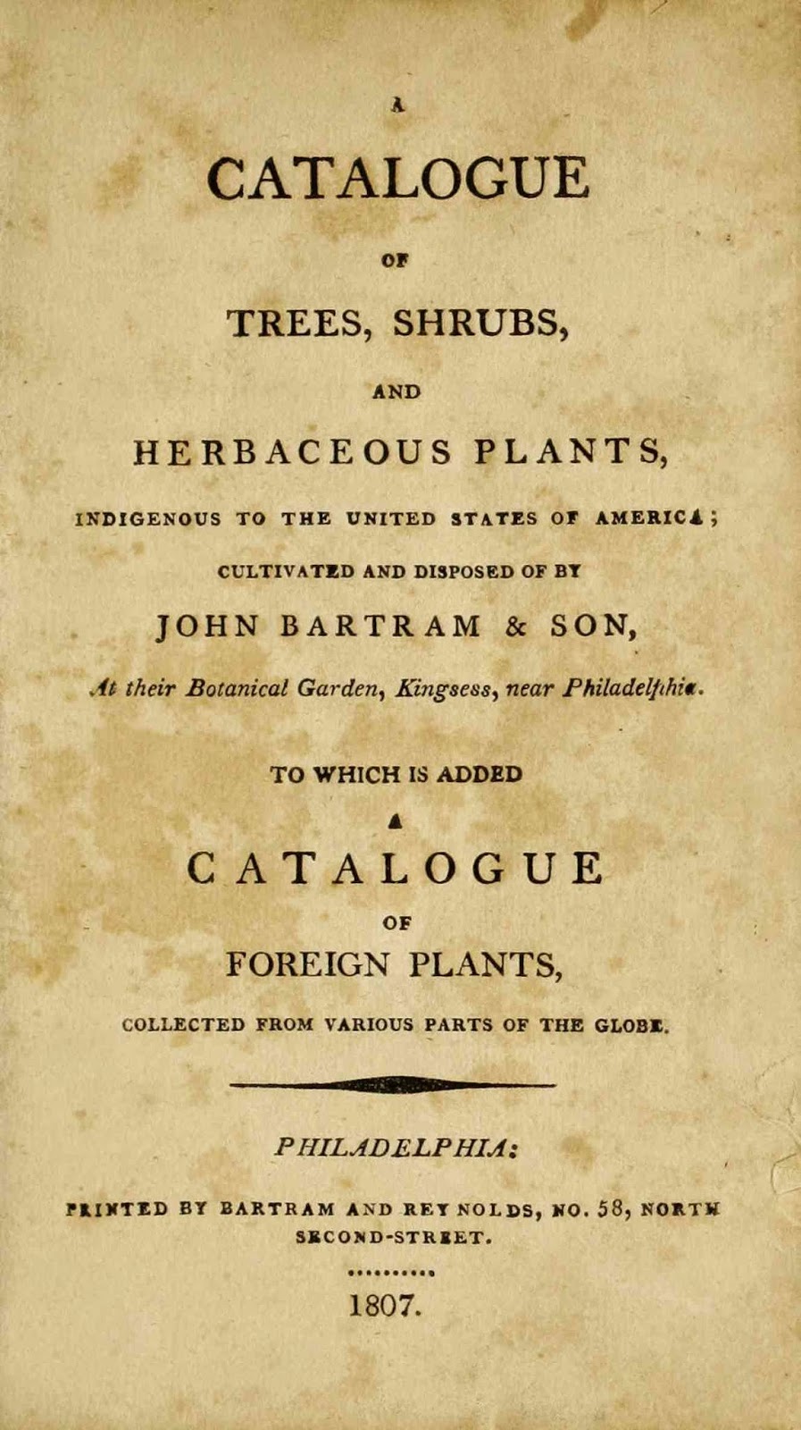 | John Bartram and Son. A catalogue of trees, shrubs and herbaceous plants, indigenous to the United States of America. 1807. http://biodiversitylibrary.org/page/44008602. |