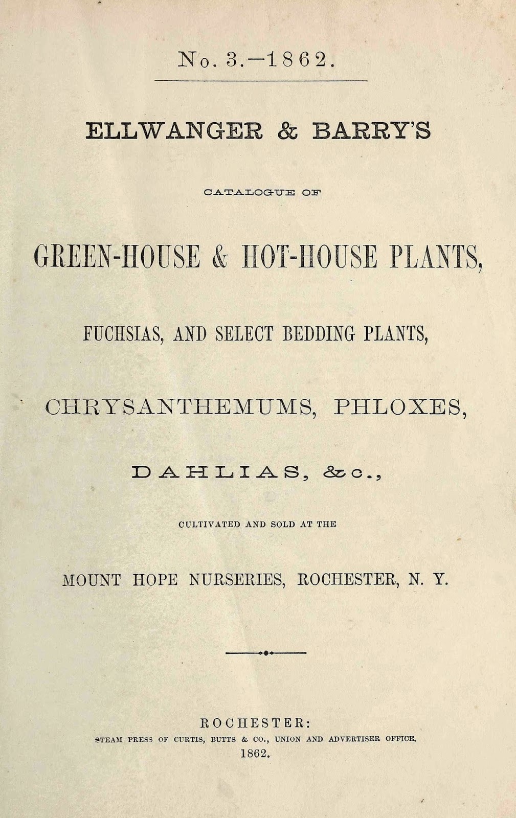 | Ellwanger and Barry’s catalogue of green-house and; hot-house plants, fuchsias, and select bedding plants, chrysanthemums, dahlias. 1862. http://biodiversitylibrary.org/page/42744851. |