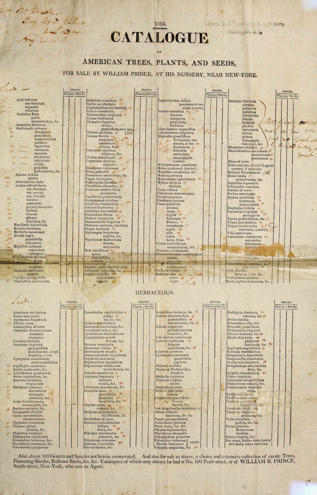 | Catalogue of American trees, plants, and seeds, for sale by William Prince, at his nursery, near New-York. 1818. http://biodiversitylibrary.org/page/42745739. |