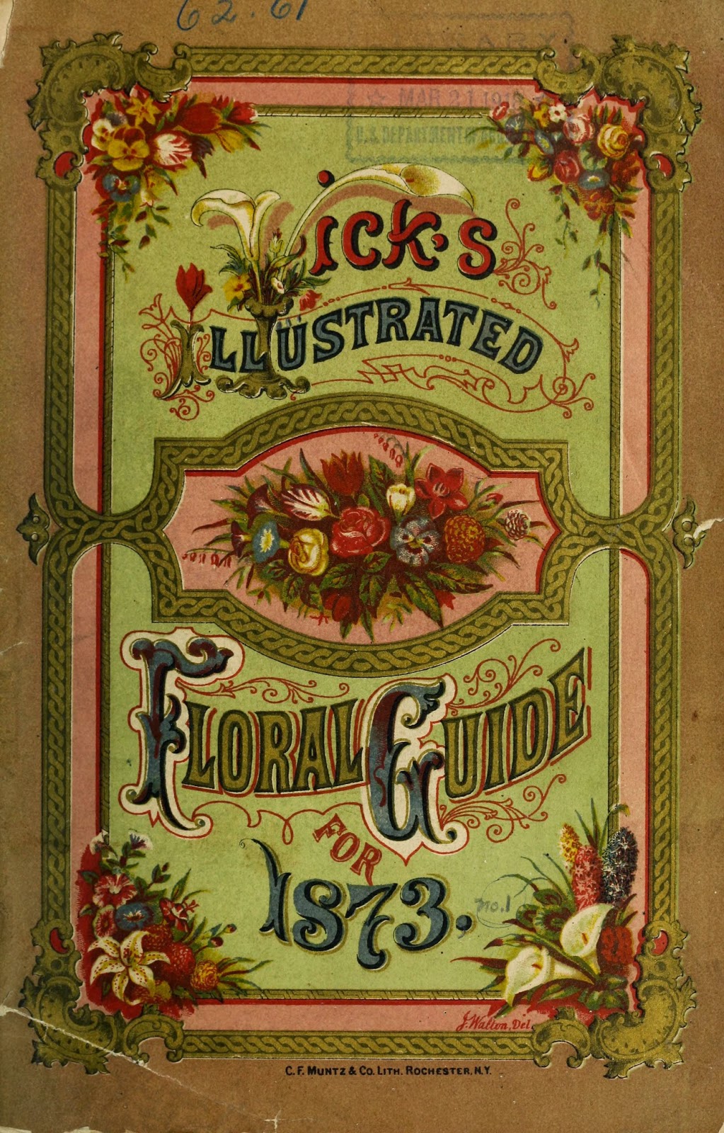 | Chromolithograph cover. Vick’s Illustrated Floral Guide for 1873. http://biodiversitylibrary.org/page/44383969. |