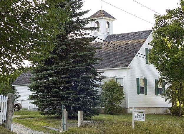 | The Library of Sabbathday Village in New Gloucester, Maine (Wikimedia Commons, August 2010) |