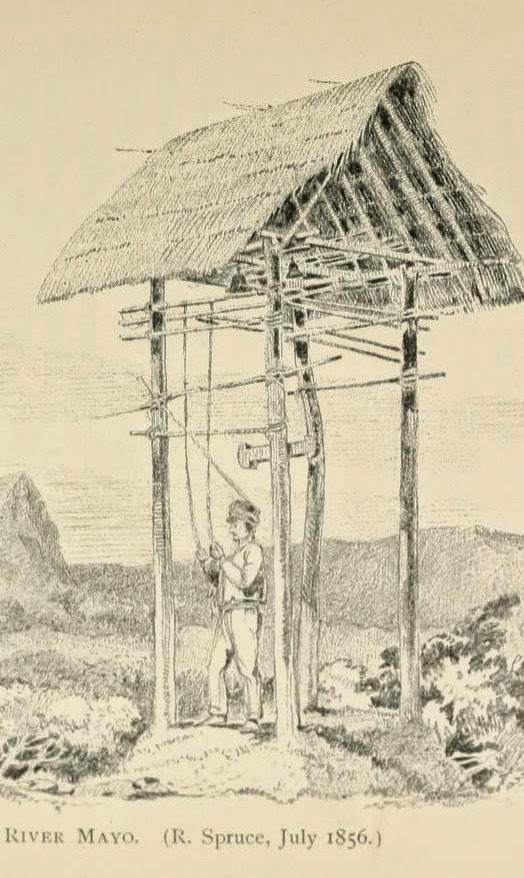 In the field Spruce spent the night in tambos like this: