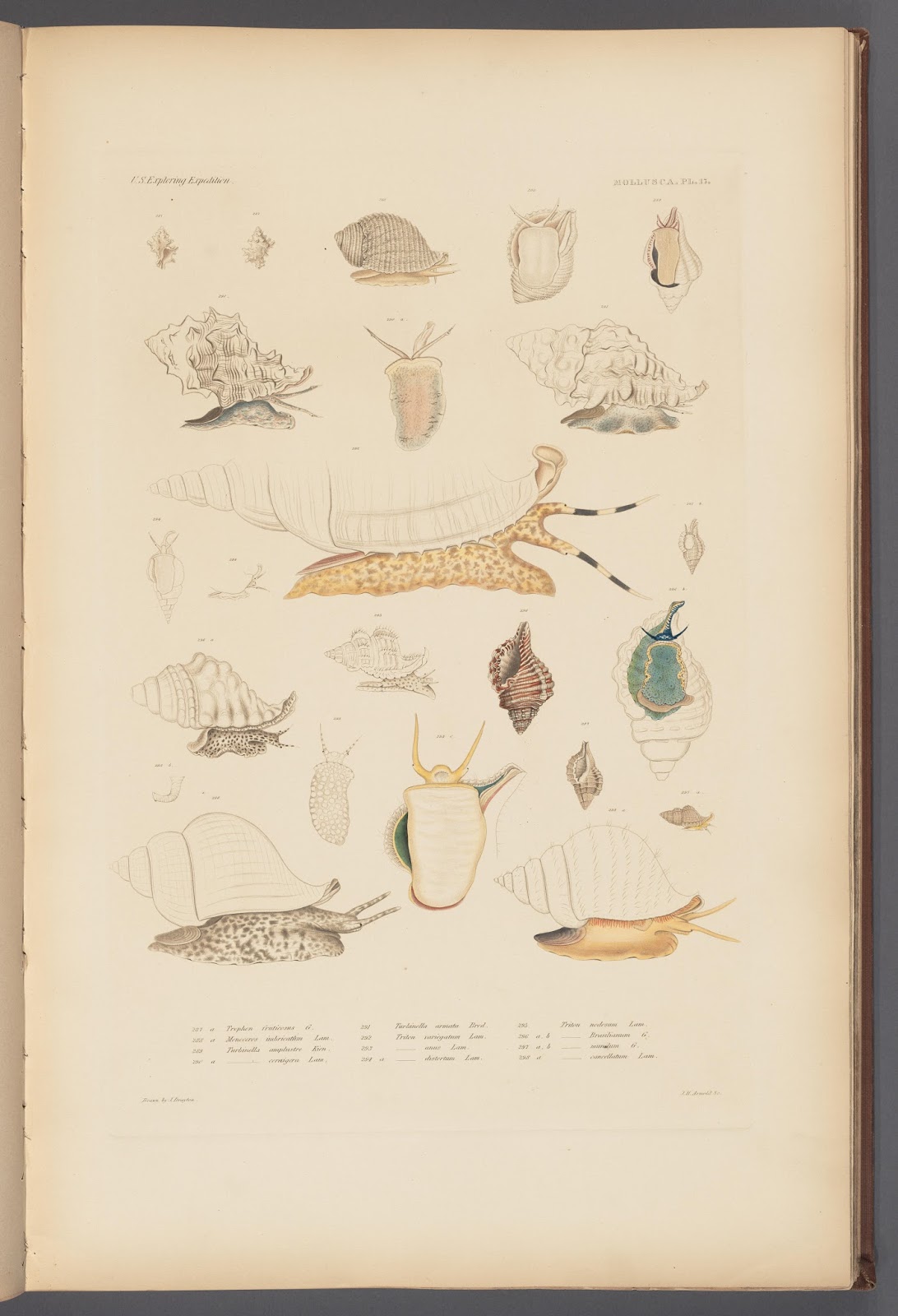 The history of U.S. conchology would not be complete without mentioning Augustus Addison Gould (1805-1866) who described nearly 1,100 molluscan species. He was a physician, as well as a conchologist, whose research on Massachusetts invertebrates remains a standard reference still used today. He helped found the Boston Society of Natural History with Amos Binney and was a curator for its mollusk collection for many years. He helped to identify and describe the new shells collected during the Wilkes (or U.S.) Exploring Expedition to the Pacific (1838-1842), which was published in Atlas Mollusca and Shells (volume 12 of the Expedition series).