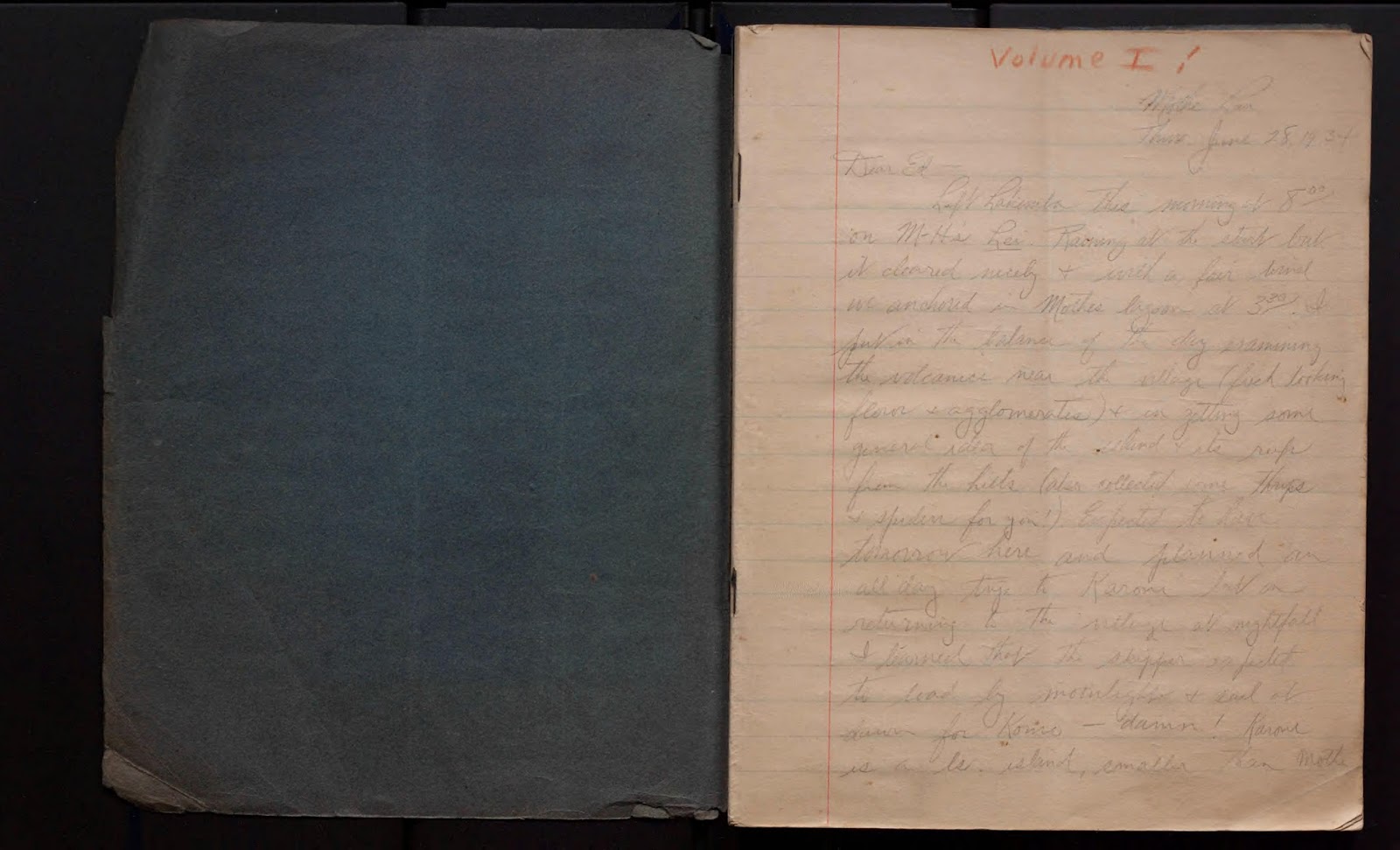One of the journals in the challenge is from Harry Stephen Ladd (1899-1982), a geologist and paleontologist who worked much of his career with the US Geological Survey. Many of his fossil specimens can be found in the Stratigraphic collections and Mollusca Cenozoic Marine Type collection at the Department of Paleobiology, National Museum of Natural History. He began working in the field in the 1920’s and eventually became a leading authority in the geology of the islands in the Pacific Ocean. His two volume diary documents some of his earliest work in the Pacific region. In 1934, he went into the field for the second time with J. Edward Hoffmeister of the University of Rochester to study the coral formations in Fiji (in the 1960s he even used aerial observations made from a helicopter the document the shape and character of Fiji reefs). This work would go on to stimulate the debate about “the coral problem” of how did islands and atolls form. There were two competing theories in the early twentieth century — Darwin’s and Reginald Daly’s.
