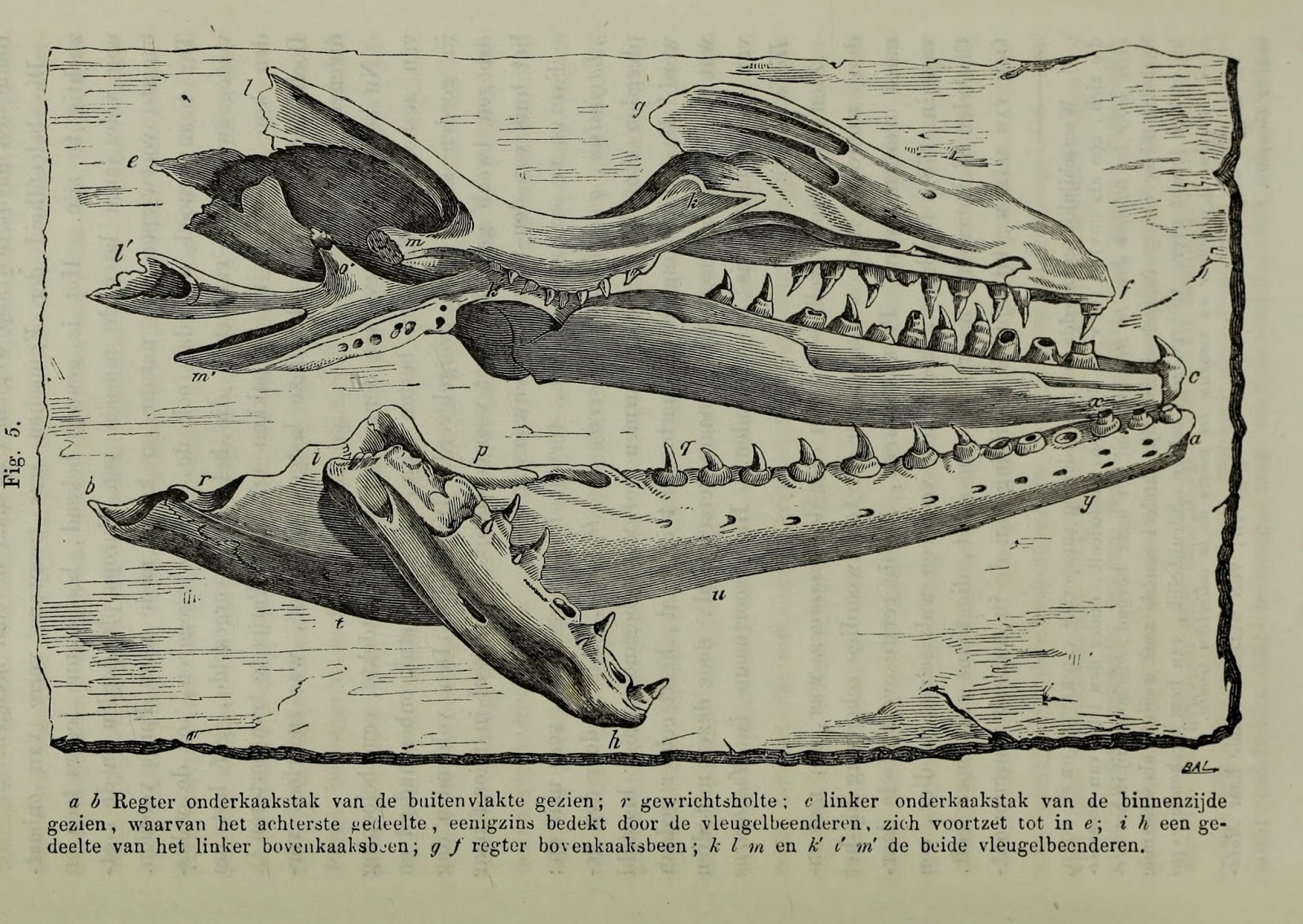 | Jaws of the Mosasaur. Harting, Pieter. Album der Natuur. 1866. http://biodiversitylibrary.org/page/35222337. Digitized by Natural History Museum, London. |