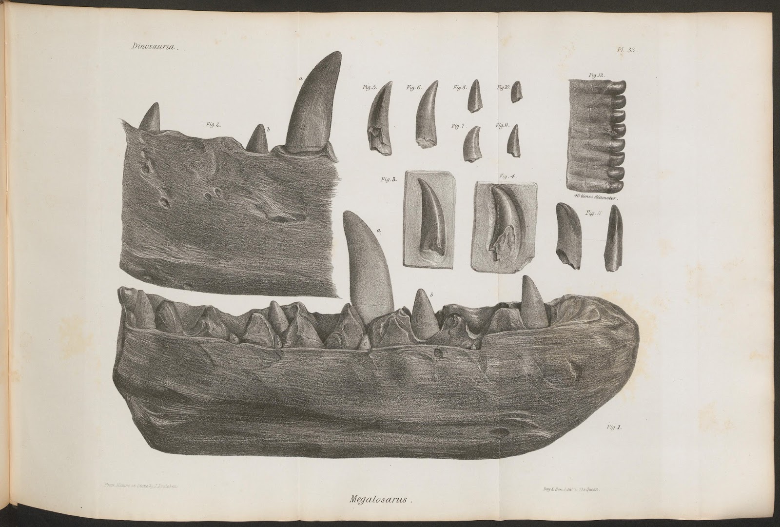 | Megalosaurus. Owen, Richard. History of British Fossil Reptiles. (1849-84). http://biodiversitylibrary.org/page/31985705. Digitized by: Missouri Botanical Garden. |