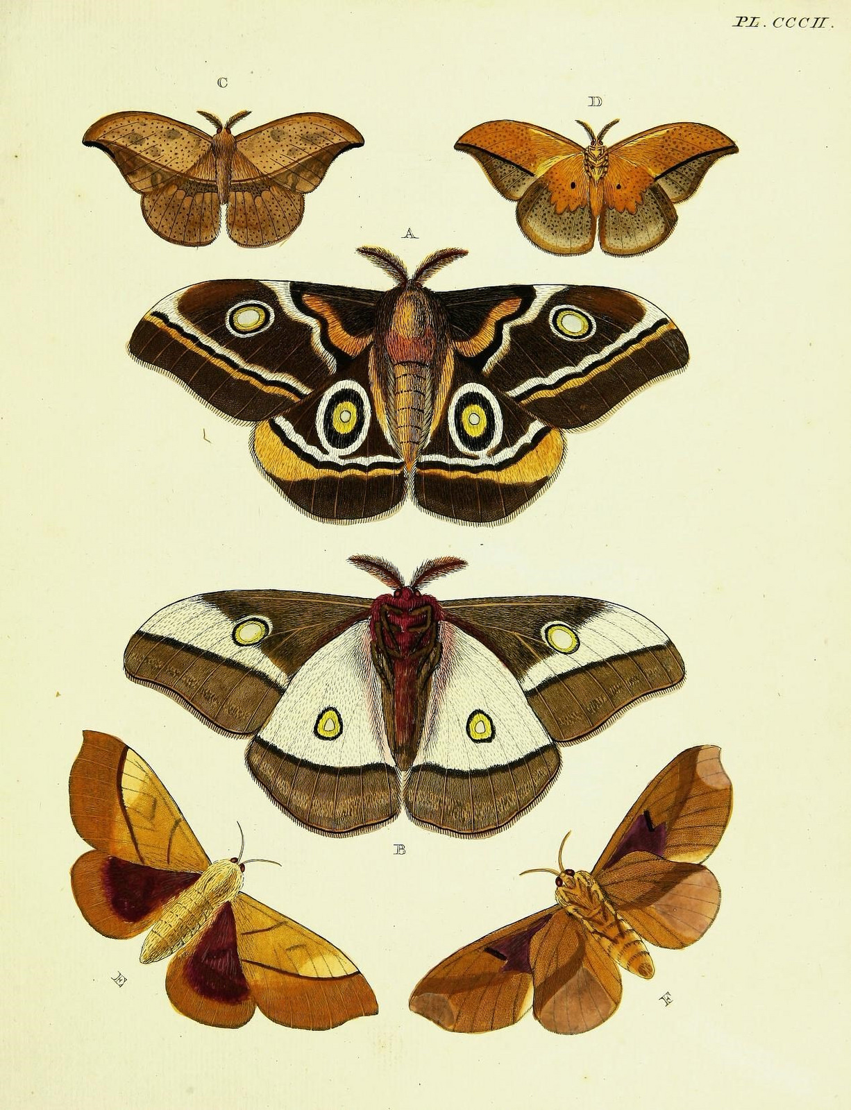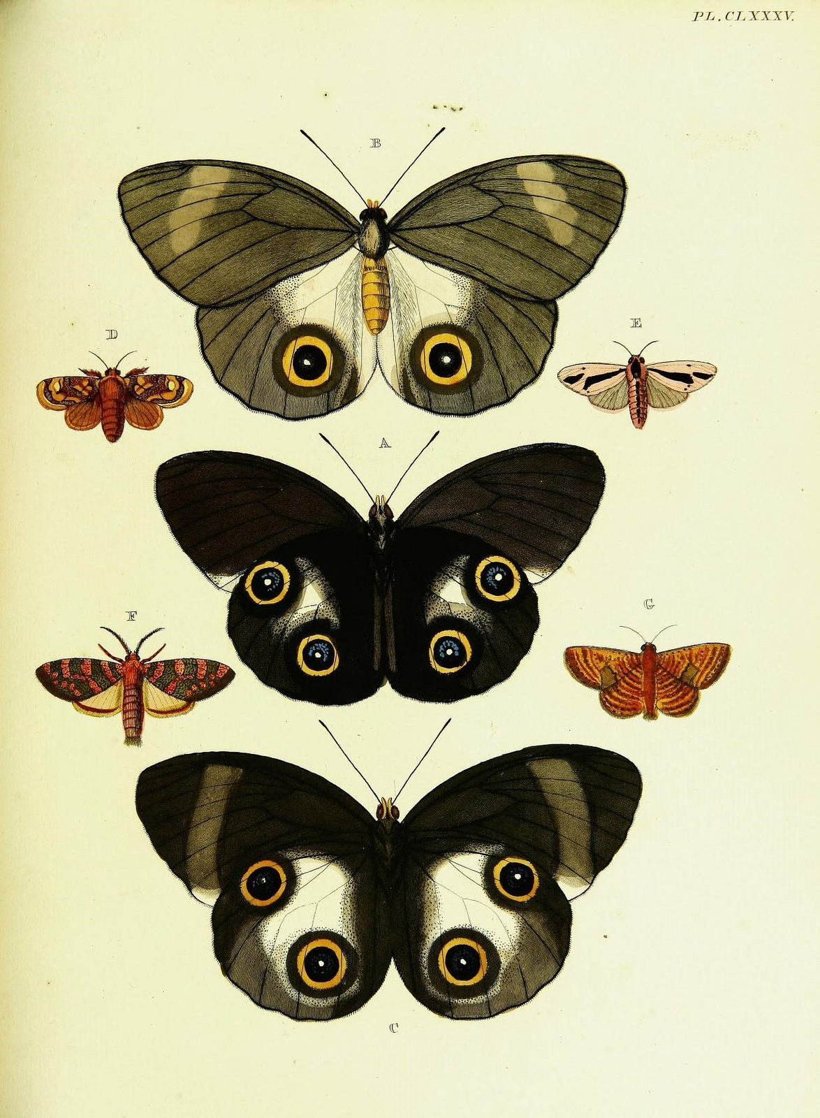 You can explore De uitlandsche kapellen voorkomende in de drie waereld-deelen, Asia, Africa en America (1779-1782), by Pieter Cramer, for free in BHL, digitized by Mann Library, Cornell University Library. You can view the illustrations in this work on Flickr: Pts. 1-2 | Pts. 3-4.