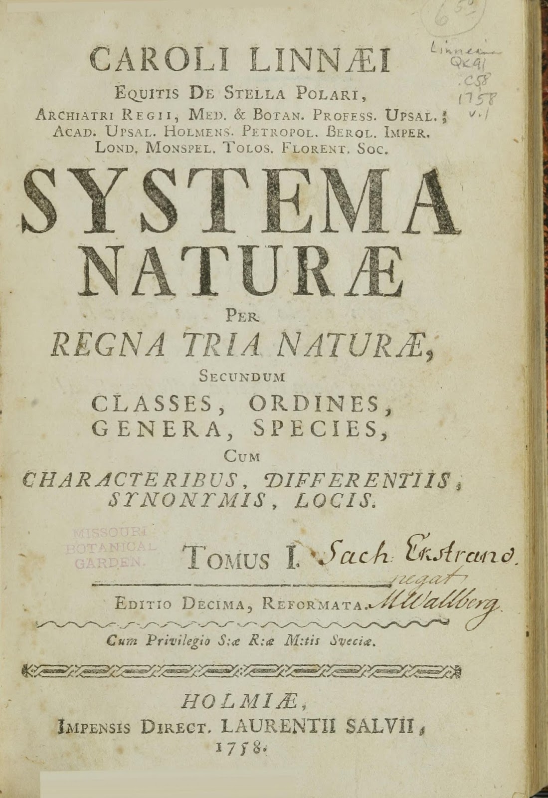 - Systema naturae per regna tria naturae, v. 1