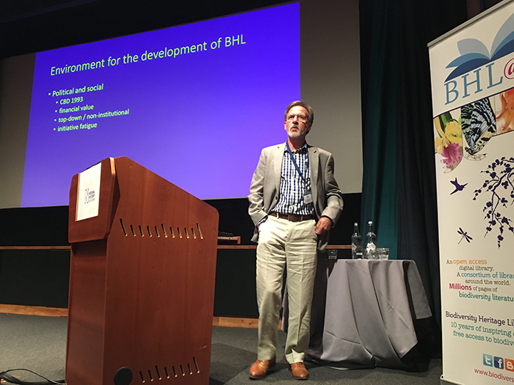 Speakers for BHL Day included Ian Owens, Director of Science at the Natural History Museum, London (NHM); Gowan Dawson and Geoffrey Belknap from the University of Leicester; Jane Smith, Head of Library and Archives at NHM; and Martin R. Kalfatovic, BHL Program Director. The program’s opening keynote speaker was Richard Lane, Consultant and Independent Advisor in Science and Museums and former Director of Science at NHM. The closing keynote was provided by Rod Page from the University of Glasgow and creator of BioStor. See the links at the end of this post to view the presentations by each speaker.