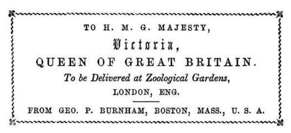 | Postage detail for Burnham’s shipment of Brahma chickens to Queen Victoria. A History of the Hen Fever (1855). http://biodiversitylibrary.org/page/37262373. Digitized by Cornell University Library. |