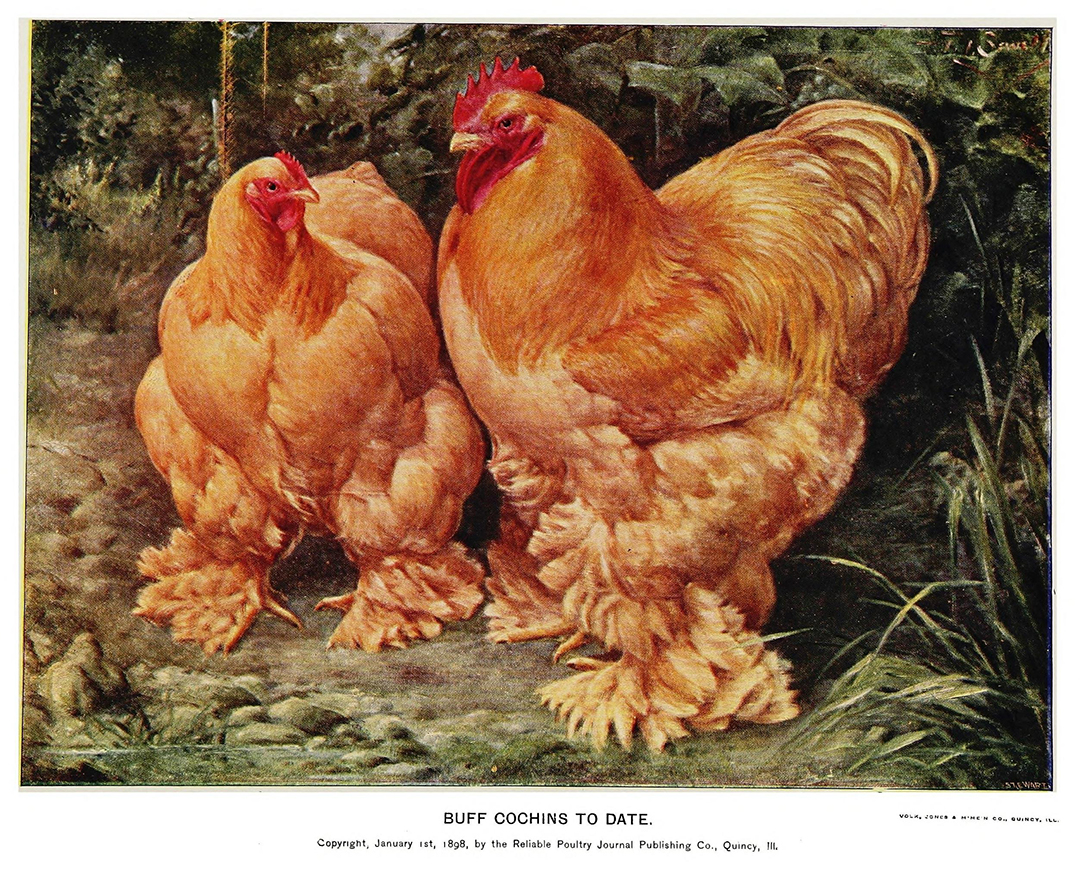 | Cochin chicken. The Asiatics (1904). http://biodiversitylibrary.org/page/37514330. Digitized by Cornell University Library. |