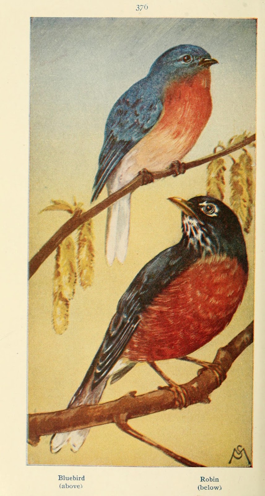 | Bluebird and American Robin illustration from Field book of wild birds and their music. London, G.P. Putnam’s Sons [c1921]. Digitized by Smithsonian Libraries. biodiversitylibrary.org/page/13653780 |