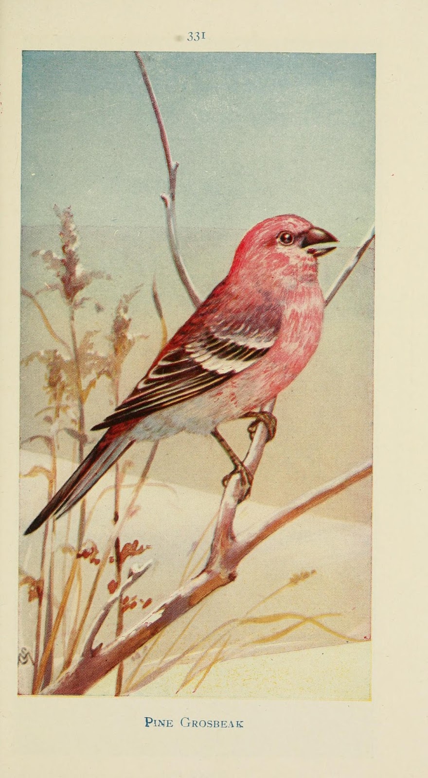 | Pine Grosbeak illustration from Field book of wild birds and their music. London, G.P. Putnam’s Sons [c1921]. Digitized by Smithsonian Libraries. biodiversitylibrary.org/page/13653735 |