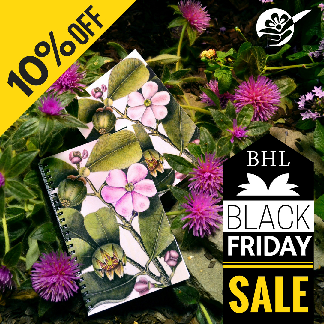 From November 23-27, save 10% off select products in the BHL store. In our Black Friday Sale Collection, you’ll find notebooks, greeting cards, mugs, home decor, and more great items featuring beautiful scientific illustrations from the BHL collection.