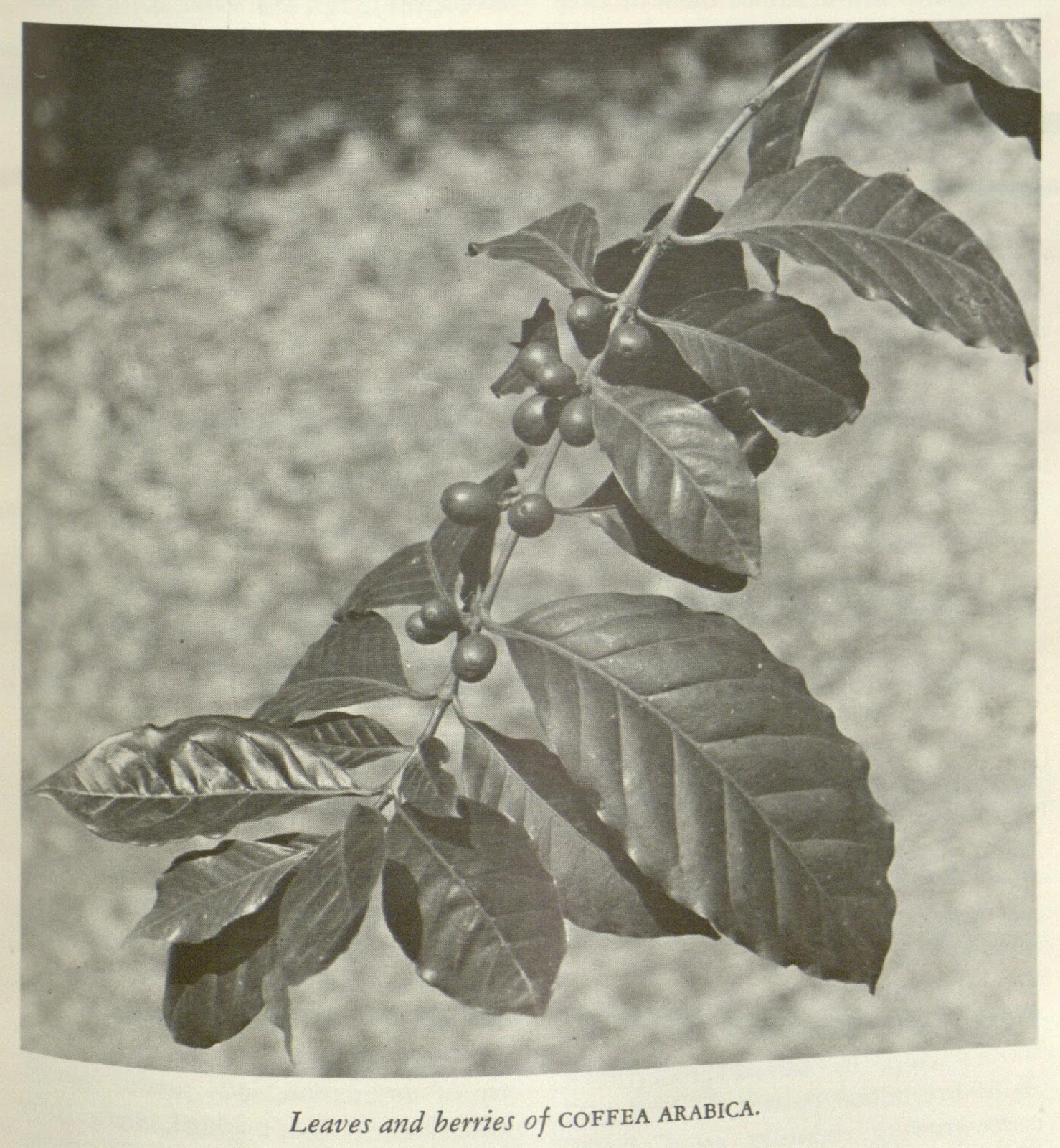 | Leaves and berries of Coffea arabica. Enari, Leonid. “Coffee.” Lasca Leaves. v. 26 (1976). http://www.biodiversitylibrary.org/page/41846781. Digitized by the Missouri Botanical Garden. CC-BY-NC-SA. |