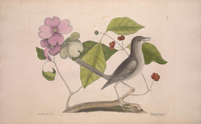 | Eastern flowering dogwood (Cornus florida) and northern mockingbird (Mimus polyglottos). Catesby, Mark. The natural history of Carolina, Florida and the Bahama Islands. v. 1, ed. 1. pl. 27. Digitized by Smithsonian Libraries. http://biodiversitylibrary.org/page/40753198. |