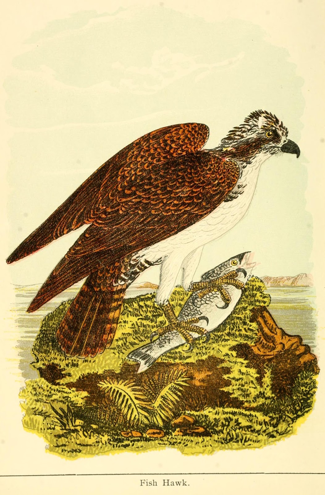 | Fish Hawk. Warren, Benjamin Harry. Some Birds and Mammals which Destroy Fish and Game. Clarence M. Busch, state printer of Pennsylvania, 1897. Digitized by The Library of Congress. http://www.biodiversitylibrary.org/page/29736918. |