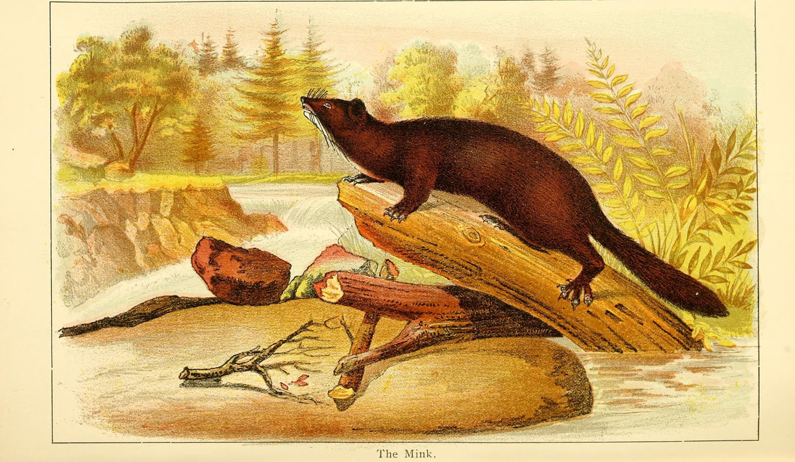 | The Mink. Warren, Benjamin Harry. Some Birds and Mammals which Destroy Fish and Game. Clarence M. Busch, state printer of Pennsylvania, 1897. Digitized by The Library of Congress. http://www.biodiversitylibrary.org/page/29736933. |