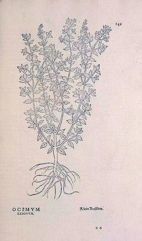 | Fuchs: “Women everywhere raise Ocimun in clay pots on windowsills of their homes, also in gardens.” Smithsonian Libraries’ copy scanned by BHL (link here) |