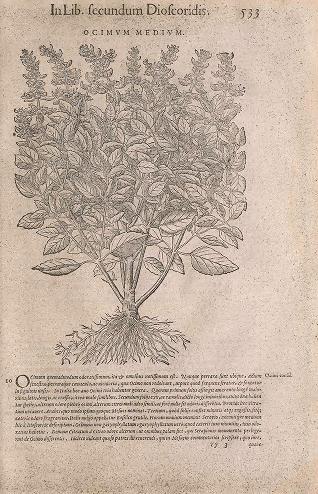 | Illustration of one type of basil in the Smithsonian Libraries’ 1565 edition of Mattioli (BHL scan here) |