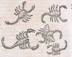 | Scorpions. Woodcut from Conrad Gessner, Historia animalium. Liber 2, 1586 (BHL link here) |