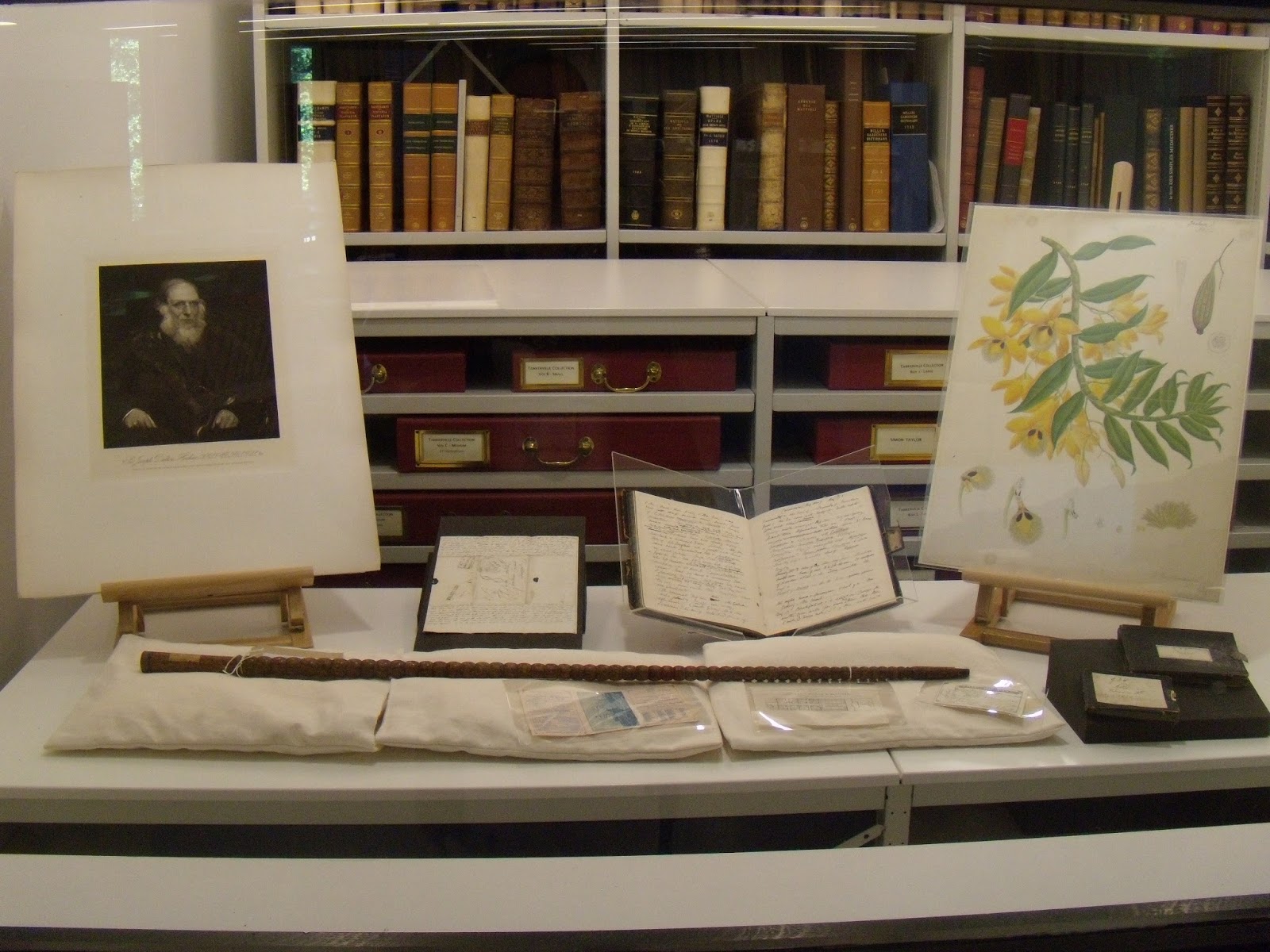 | Selection of material on display on the Wolfson Reading Room at the Royal Botanic Gardens, Kew. |