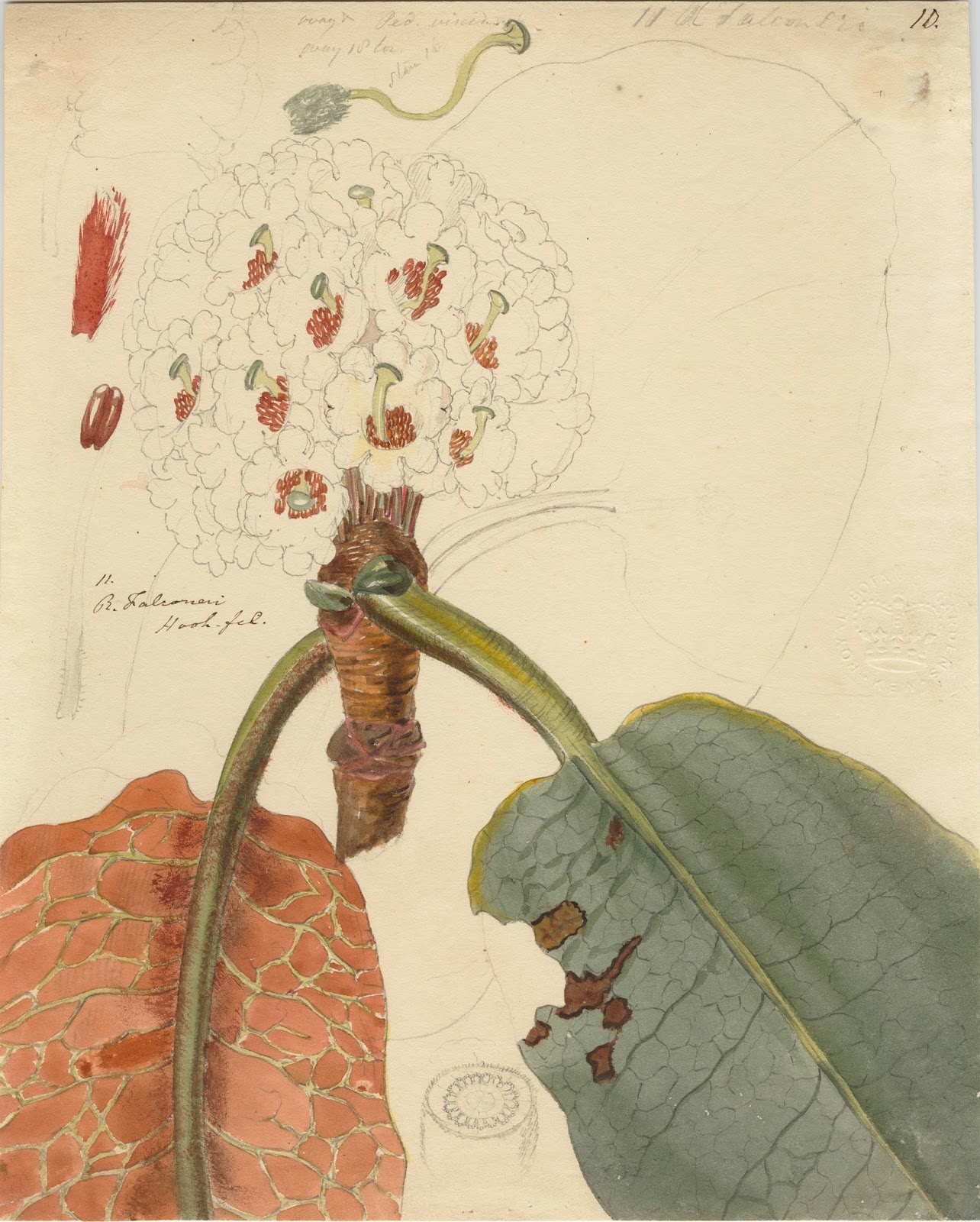 | Field sketch of Rhododendron falconeri by Joseph Hooker, c.1850. Reproduced by the Permission of the Trustees of The Royal Botanic Gardens, Kew. |