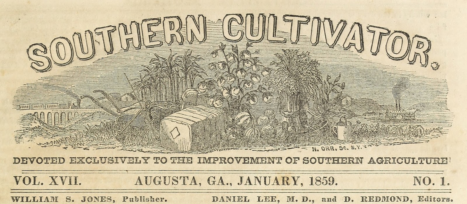 Difficult as it is to read these words—and they are hardly the most racist to appear in the journal’s pages—they provide an unvarnished glimpse into a period of American history in which slavery was a cornerstone of agriculture throughout much of the country. Indeed, The Southern Cultivator shows that it was not southerners alone who believed slavery was vital to the economy. In v.17 (1859), as the tensions that would lead to civil war were quickly rising, the editors reprinted an editorial from the Providence [Rhode Island] Post arguing that the North would suffer equally, if not more, if the South were to secede from the Union or if slavery were abolished. They preface the editorial by saying, completely without irony, that they “seldom dabble in anything that even resembles the ‘dirty water of politics’.” The editorial itself is frank in putting material concerns over principle: