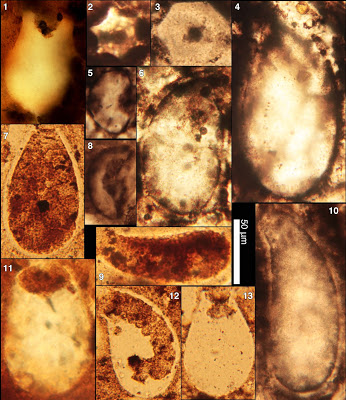 | Vase-shaped microfossils from Tasmania. Likely about 760 million years old. |