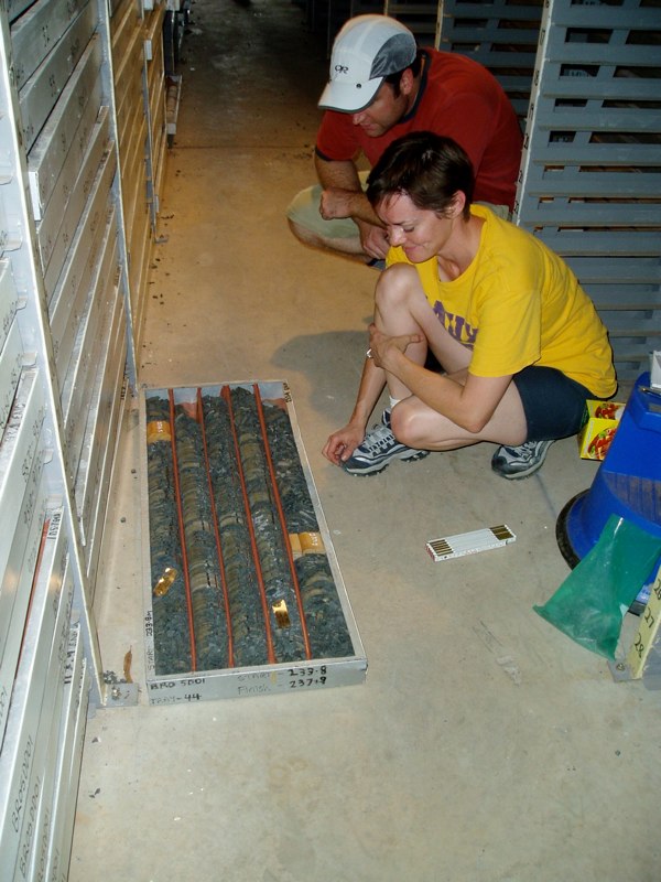 | Dr. Riedman sampling drillcore in Darwin, Australia. |