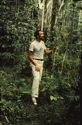 | © The Field Museum, GN83861c. Dr. Timothy Plowman, Botany, collecting coca plant specimens near Leticia, Peru. |